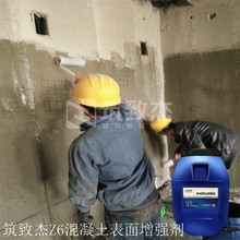 筑致杰Z6混凝土表面增強(qiáng)劑是液態(tài)水溶性產(chǎn)品,通過充分滲透,一般能滲透3-30mm,其有效成分能與混凝土中的游離鈣發(fā)生化學(xué)反應(yīng),生成凝膠物質(zhì),從而增加了結(jié)構(gòu)的致密性。