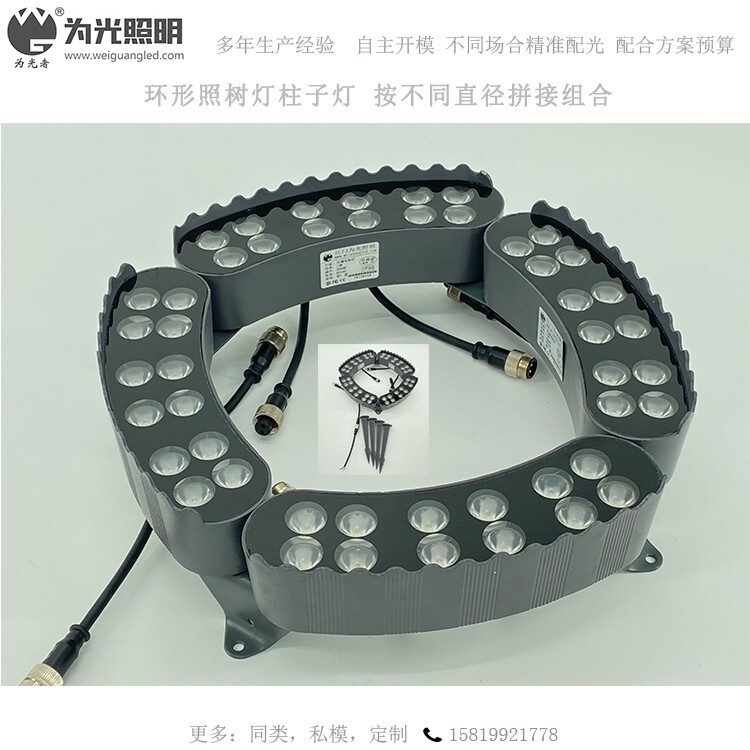 環(huán)形LED抱樹燈燈具模組可自由組合,1/4圓模組設計,安裝簡便。