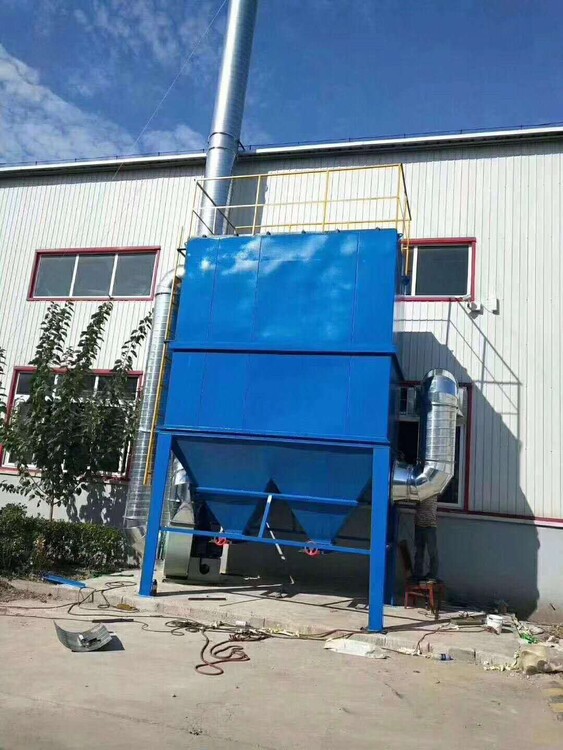 設(shè)備在系統(tǒng)主風機的作用下,?含塵氣體從除塵器下部的進風口進入除塵器底部的氣箱內(nèi)停止含塵氣體的預(yù)處置,?然后從底部進入到上箱體的各除塵室內(nèi);?粉塵吸附在濾筒的表面面上,?過濾后的潔凈氣體透過濾筒進入上箱體的凈氣腔并聚集至出風口排出。