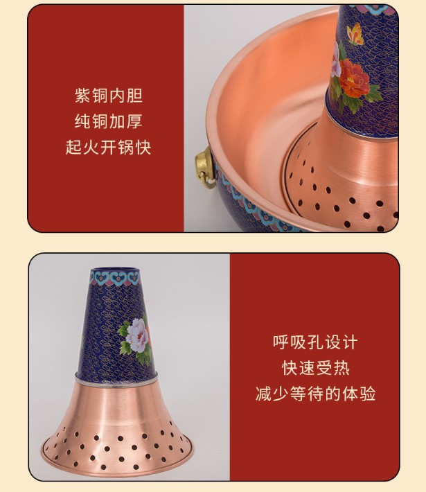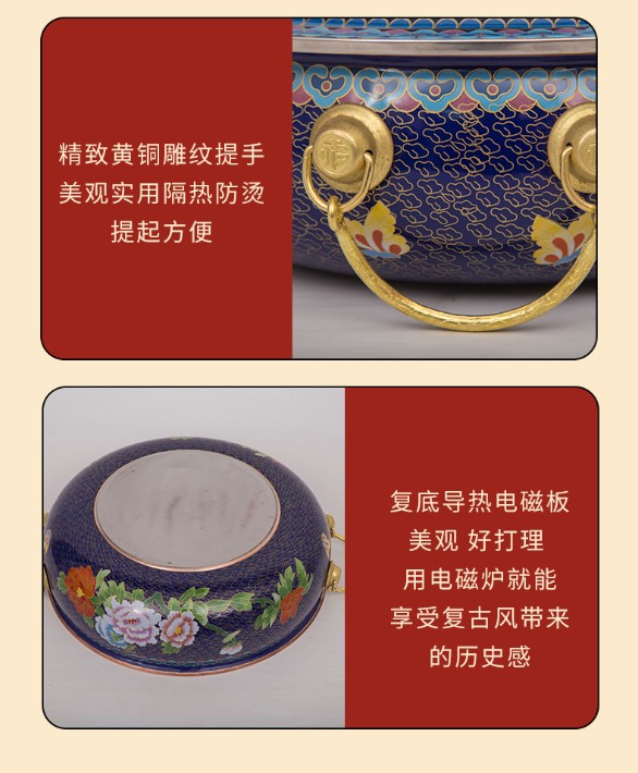 景泰藍(lán)電磁爐銅火鍋 純銅火鍋 電磁爐銅火鍋 景泰藍(lán)銅火鍋