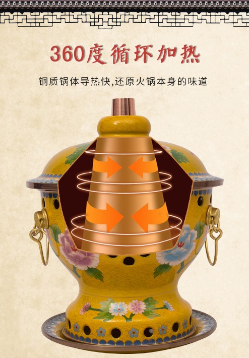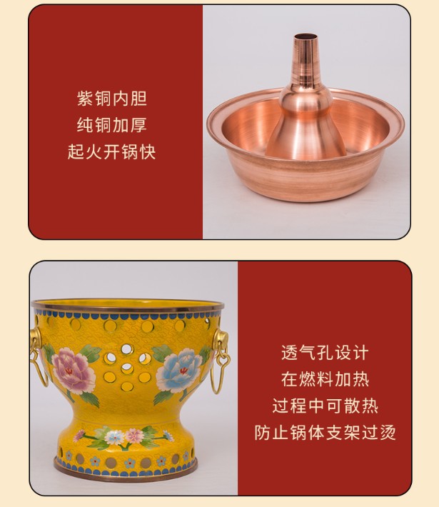景泰藍(lán)銅火鍋純銅加厚木炭銅火鍋插電銅火鍋電炭兩用銅火鍋