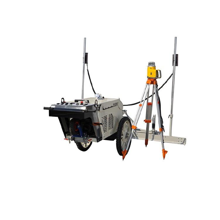 2、混凝土放下后,將其進(jìn)行初步攤平,攤平高度以標(biāo)高3公分厚為宜。然后用混凝土激光整平機(jī)廠家生產(chǎn)的激光整平機(jī)整平。整平不到的邊角部位,可以使用汽油式整平尺或人工方式刮平。